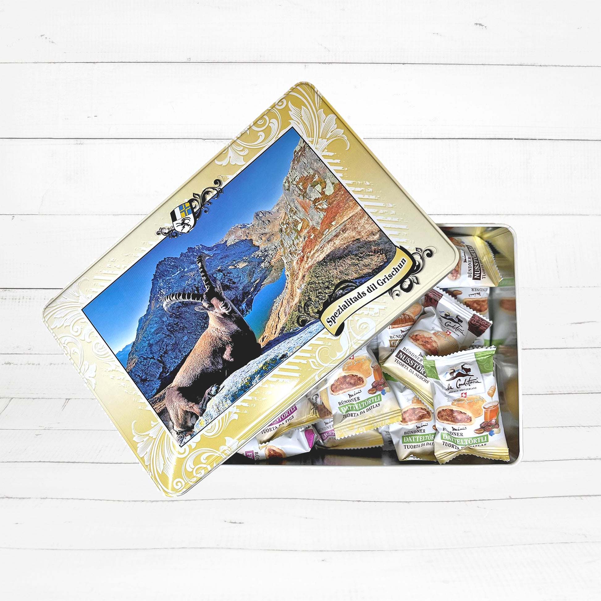 Ein genussvolles Geschenk oder eine feine Begleitung zu Kaffee und Tee – feine Bündner Confiseriekunst in einer schöner Verpackung.