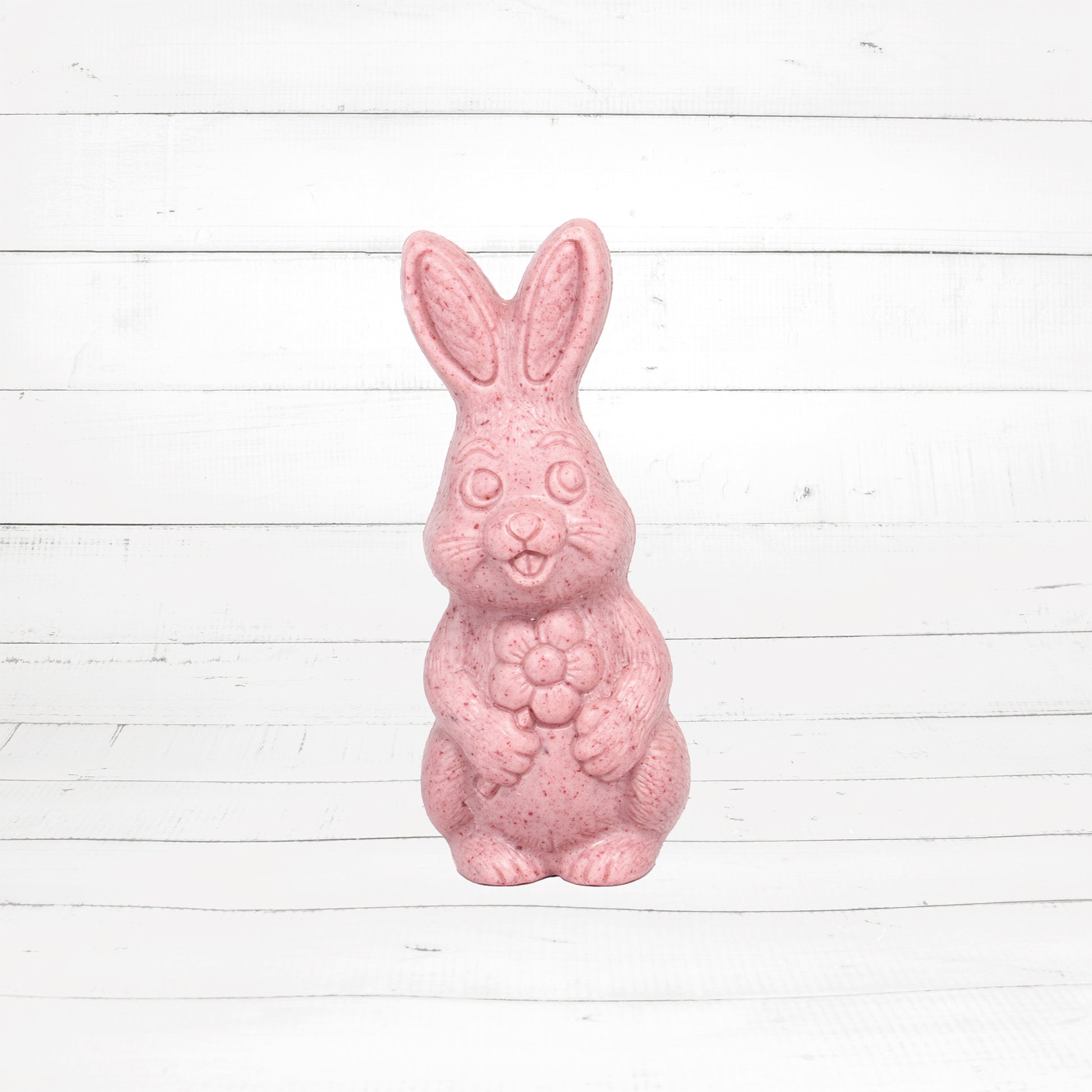 Handgemachter Osterhase aus feinster weisser Schokolade mit Himbeergeschmack